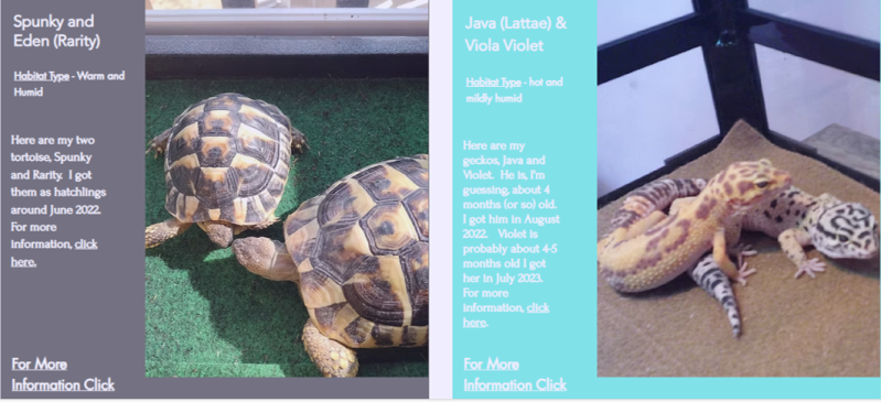 This page is dedicated to our home and class pets and the experience we’ve gained through learning about different habitats, setting up and maintaining these habitats, and learning to take care of animals/exotic animals.